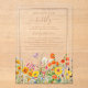 Las invitaciones de acrílico a la ducha de novia Brunch & Bubbly Boho Wild Flowers presentan flores de campo de bonito en naranja, amarillo, morado y rosa con su información sobre la invitación a la ducha de novia. Perfecto para que su novia sea una celebración con flores botánicas modernas y tipografía de escritura elegante. Creado por Evco Studio www.zazzle.com/store/evcostudio