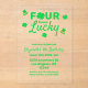 Four times lucky! 4th birthday invitation for a March or St Patrick's Day birthday. Features green shamrock and leprechaun hats