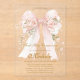 Celebrate a meaningful milestone with our Girl Floral Bow First Holy Communion acrylic invitation, crafted to add a touch of elegance to your sacred event. This beautifully designed invitation features a delicate floral bow motif on clear acrylic, combining sophistication with a personal touch. Made from high-quality, durable acrylic, it offers a modern twist on traditional invitations, ensuring your guests receive a keepsake they will cherish forever.
