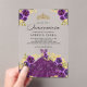 Invitaciones Acrílicas Glam Purple Vestido Floral 15 Quinceañera