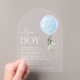Invitaciones Acrílicas Globo azul, eucalipto, vegetación, Baby Shower