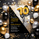 Invitaciones Acrílicas Globos Elegante Negro | Fiesta de los 70 Años de O
