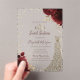 Invitaciones Acrílicas Gold Diamonds Dress Dark Red Roses Sweet 16