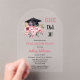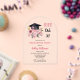 Invitaciones Acrílicas Grad Cap y Floral Rosa Lo Hizo Grad Fiesta
