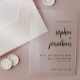 Estas elegantes y minimalistas invitaciones nupciales acrílicas tienen una tipografía de escritura negra y moderna y un texto limpio y sans serif para un diseño simple y elegante que le encantará.