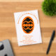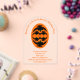 Esta impresionante invitación acrílica de la fiesta de Halloween incluye un oval naranja con seis cuervos. Cada cuervo tiene ojos amarillos con pupilas negras y alas estiradas. Los cuervos están volando unos hacia otros formando una forma oval. Hay un texto personalizado para que puedas personalizar este diseño con un nombre y la ocasión así como todos los detalles importantes.