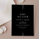 Esta elegante boda acrílica negra salva la fecha de la Everly Collection que presenta un tipo blanco nítido, detalles geométricos de arte deco y espaciado editorial. Los sencillos y delgados motivos de tres líneas enmarcan un texto elegante para un refinado y moderno aspecto minimalista, listo para la noche.