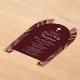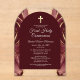 Una sofisticada y elegante invitación de la Primera Comunión Santa con un rico diseño de agate de oro y burdeos. Impreso en acrílico premium, esta invitación combina el estilo moderno con la gracia eterna. Los profundos tonos burdeos acentuados por los lujosos detalles de oro crean una estética refinada y significativa, lo que la convierte en la elección perfecta para la celebración sacramental especial de un joven chica.
