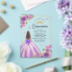 Invitaciones Acrílicas Lavender Vestido Floral Mariposa Oro Quinceanera
