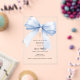 Un fondo claro y transparente, decorado con un lazo grande azul claro y una cruz dorada. Personalice y agregue el nombre y detalles detalles.