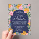 Invitaciones Acrílicas Lush Pink Yellow Flowers Dark Blue Wedding
