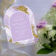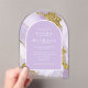 Este diseño a medida, con una tinta de alcohol abstracta en tonos de lavanda suave a violeta lila con acentos dorados brillantes, es perfecto para una boda romántica y elegante. La invitación a la boda acrílica transparente en forma de arco que se muestra aquí proporciona una plantilla para añadir fácilmente sus propios nombres, fecha de boda y detalles del evento. Buscar ID990 para ver otras piezas en este conjunto de bodas coordinado.