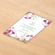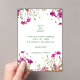 Bring your love to life with this truly unique clear acrylic invitation, featuring a breathtaking border of vibrant magenta pink cosmos flowers and wildflowers. The delicate blooms and green buds are beautifully mirrored at the top and bottom of the crystal-clear panel, creating a whimsical and sophisticated natural frame for your personalized wedding details.