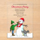 Christmas Party Invitation with an illustration of a boy and dog building a snowman.
