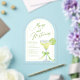 Margs & Matrimony es un tema de moda para una ducha de novias donde el objetivo principal es soltarse y divertirse. El diseño presenta una tipografía de escritura moderna, un arco de moda y una margarita al estilo de las acuarelas con un arco verde atado alrededor del tallo del vidrio para darle ese toque de novia. Personalice la plantilla con el nombre de la futura novia y los detalles del fiesta en la parte delantera. © Kimbellished, LLC