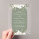 Aumente su estilo boda con estas elegantes invitaciones acrílicas, con marfil atemporal y acentos florales de color verde sabio. Diseñados para exudar sofisticación, estos invitan a combinar el material acrílico moderno con delicadas flores y un frondoso follaje, perfecto para un boda romántico inspirado en el jardín. Ideal para parejas que buscan un aspecto refinado y natural, este diseño combina elegancia con un toque de encanto botánico, creando un tono elegante para su día especial.