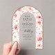 Celebrate your love with this dreamy acrylic wedding invitation, perfect for a spring or summer celebration. Featuring delicate watercolor wildflowers in blush pink, sage green, golden yellow, soft orange, and white, the design is framed by a shimmering gold arch — creating a timeless space for your wedding details.
