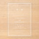 Estas elegantes y modernas invitaciones a bodas acrílicas presentan un sencillo diseño de texto minimalista, con un marco blanco clásico en el borde. Añada sus iniciales o su monograma para hacerlas completamente propias.