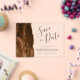 Esta elegante y moderna tarjeta de fecha guarda un rizo de acuarela marrón mocha recortado con un falso purpurina de oro. El texto del personalizable combina el guión de escritura a mano gris carbón, el copperplate y las fuentes cursivas en un fondo transparente claro.