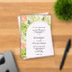 Las invitaciones a bodas acrílicas LIMPIAS o FROSTADAS incluyen los detalles de tu ceremonia con letras de moda rodeadas de un arco rosado y hermosas flores acuáticas que incluyen hortensias blancas y verdes, rosas rosas y cremas, margaritas, tallos pequeños y hojas. COINCIDIENDO elementos de nuestra colección.
