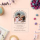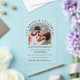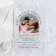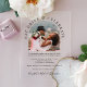Moda moderna y clara elegancia acrílica o boda privado invitación e invitación a la recepción con tu foto en un marco de arco y "Comer Bebida y Celebrar" en elegante tipografía sísmica. Personalice los detalles de la invitación y agregue sus nombres en un script similar a la firma.