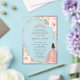 En esta moda, una invitación acrílica de Quinceañera se presenta a un chica con un vestido de rosa dorado, un marco geométrico adornado con delicados colores florales, una vegetación suave y elegantes acentos rosas de oro. Personalízalo fácil y rápidamente, simplemente haga clic en el botón "Editar usando la herramienta de diseño" para modificar el texto, la redacción, el estilo de fuente, el tamaño de fuente y el color de fuente. También puede agregar o quitar texto y mover o quitar imágenes. El chica y la corona son móviles, redimensionables, duplicables y extraíbles, lo que le permite personalizar el diseño para su ocasión. Perfecto para Quinceañeras, dulces 16, fiestas de 18 años, Bat Mitzvahs y muchas más celebraciones! Para un aspecto sin inconvenientes y coordinado, explore nuestra gama de artículos de correspondencia disponibles en la tienda. c) El estudio Happy Cat Studio