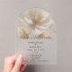 A gorgeous minimalist white and gold color half arch acrylic wedding invitation.