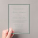 Share your wedding details with refined style using this sage green border acrylic wedding invitation. A sage green frame outlines the design on a clear acrylic background, creating a light and elegant contrast that feels timeless and fresh. The couple’s names are displayed in elegant calligraphy, with ceremony details presented below in classic serif typography for a beautifully balanced layout. Ideal for garden weddings, outdoor celebrations, estate venues, and modern romantic ceremonies, this acrylic invitation offers a polished and versatile foundation that sets a calm, elevated tone for your wedding stationery suite.