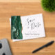 Esta elegante y moderna tarjeta de fecha guarda un borde de agujeros de color verde esmeralda adornado con un falso purpurina de oro. El texto del personalizable combina guiones de escritura a mano, copperplate y cursiva en gris carbón sobre un fondo claro.