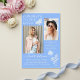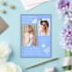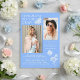 Modern Blue White Butterfly Photo Graduation Party Acrylic Invitation presenta el sencillo texto "Felicitaciones al Grado" acentuado con una flor y mariposas con dos de tus fotos favoritas y personalizado con detalles de la fiesta de graduación y nombres en una elegante tipografía de escritura blanca. Personalice editando el texto en los cuadros de texto proporcionados y agregando sus fotos favoritas. Diseñado por ©2023 Evco Studio www.zazzle.com/store/evcostudio