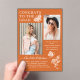 El moderno Naranja White Butterfly Photo Graduation Party Acrylic Invitation presenta el sencillo texto "Felicitaciones al Grado" acentuado con una flor y mariposas con dos de tus fotos favoritas y personalizado con detalles de la fiesta de graduación y nombres en una elegante tipografía de escritura blanca. Personalice editando el texto en los cuadros de texto proporcionados y agregando sus fotos favoritas. Diseñado por ©2023 Evco Studio www.zazzle.com/store/evcostudio