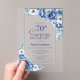 Esta moderna invitación acrílica a la fiesta de cumpleaños número 70 con flores azules está diseñada para preparar el escenario para una celebración verdaderamente memorable. Las plantillas de texto de personalizable le permiten añadir con facilidad el nombre del invitado honrado, los detalles del fiesta secreto y el lugar de celebración. Tu ser querido estará en una noche de risas y recuerdos preciados.