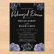 A bold and sophisticated Rehearsal Dinner Invitation featuring dramatic dusty blue and grey floral illustrations against a stark black background. The crisp white typography and classic layout set an elegant, moody tone. Perfect for a formal evening or a sophisticated wedding.