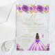 Invitaciones Acrílicas Morado Floral Brunette Hair Princess Cumpleaños