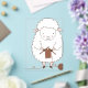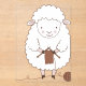 Un adorable mouton blanc tout doux s'adonne au tricot avec ses aiguilles et une pelote de laine marron. Un visuel idéal pour les passionnés de loisirs créatifs, de couture et de cocooning.