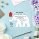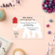 Invitación con una gran silueta de elefante blanco con un regalo envuelto en rojo. Personalice esta plantilla con la información de su fiesta. Ver todas mis tiendas en https://bit.ly/SandyspiderStores