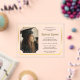 Panel de corte de marcos en vieira a la izquierda para tu foto con tus detalles a la derecha, todo rodeado por un marco de doble borde de vieiras de tono dorado en un claro diseño de invitación para una fiesta de graduación de fondo que puede ser personalizado para tu graduación de secundaria o universitarios. Diseño compuesto por Holiday Hearts Designs (derechos reservados).