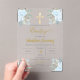 Niño español bautista invitación acrílica, invitación de Bautizo para con flores azules