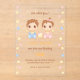 Bebés personalizados, niños y chicas, con toallitas azules y rosas y bibs amarillos con sondas que hacen juego. Agradable y original invitación para el cumpleaños de los gemelos.