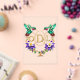 This remarkable clear acrylic invitation brings together elements of natural history illustration and contemporary material science. Twin hummingbirds, positioned in perfect mirror symmetry, display plumage rendered with such precision that ornithologists would approve, now appearing to hover in crystal-clear dimensional space. Emerald body feathers transition to ruby throats in anatomically correct patterns, while wing details show individual flight feather structure enhanced by the transparency of premium acrylic. Your monogram appears in sumptuous gold with diamond-accented framing, the metallic elements particularly luminous against clear material. Colorado's state flower illustrated in royal purple with scientific accuracy completes the design, seeming to float in transparent suspension.