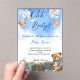 Esta encantadora ducha de bebé ofrece suaves tonos azules y un oso de peluche, perfecto para celebrar la llegada de tu pequeño. Las huellas del bebé le dan un toque personal, mientras que los globos coloridos crean un ambiente divertido y alegre. Ideal para la celebración de un niño pequeño, esta invitación seguramente traerá una sonrisa a sus invitados y preparará el escenario para un alegre evento. Envíe sus invitaciones con estilo con este adorable diseño que capta la emoción y el amor alrededor de la próxima llegada!