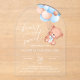 Invitaciones Acrílicas Oso bebé, globos azules, primer cumpleaños