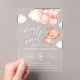 Invitaciones Acrílicas Oso bebé, globos rosados, primer cumpleaños