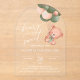 Invitaciones Acrílicas Oso bebé, globos verdes, primer cumpleaños