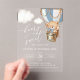 Invitaciones Acrílicas Oso de peluche, globo de aire caliente azul, prime