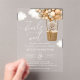 Invitaciones Acrílicas Oso, globos beige, globo de aire caliente, Baby Sh