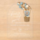 Invitaciones Acrílicas Oso lindo, globos azules, primer cumpleaños