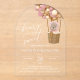 Invitaciones Acrílicas Oso lindo, globos rosados, primer cumpleaños