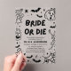 ¿Novia o Muerte 💋 💀 🕸️ lista para matar, demonios? Esta invitación a la ducha de novias en blanco y negro hecha a mano en Halloween es perfecta para la espeluznante novia que es todo menos básico. Con esqueletos bailarines, fantasmas con cócteles, murciélagos, lámparas jack-o’ y telarañas, es escalofriante, lindo y totalmente asesino. 🦇 🎃 Perfecto para una soltera gótica, ducha de novia bruja o un Fiesta de hasta la muerte nos hace. Editable, elegante y garantizado para dar la vuelta a la cabeza (y tal vez rodar unos cuantos). ✨ ¡Una obligación para la novia que se está muriendo con el fiesta! ✨