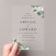 Invitaciones Acrílicas Partido de compromiso de hoja verde mínima moderna